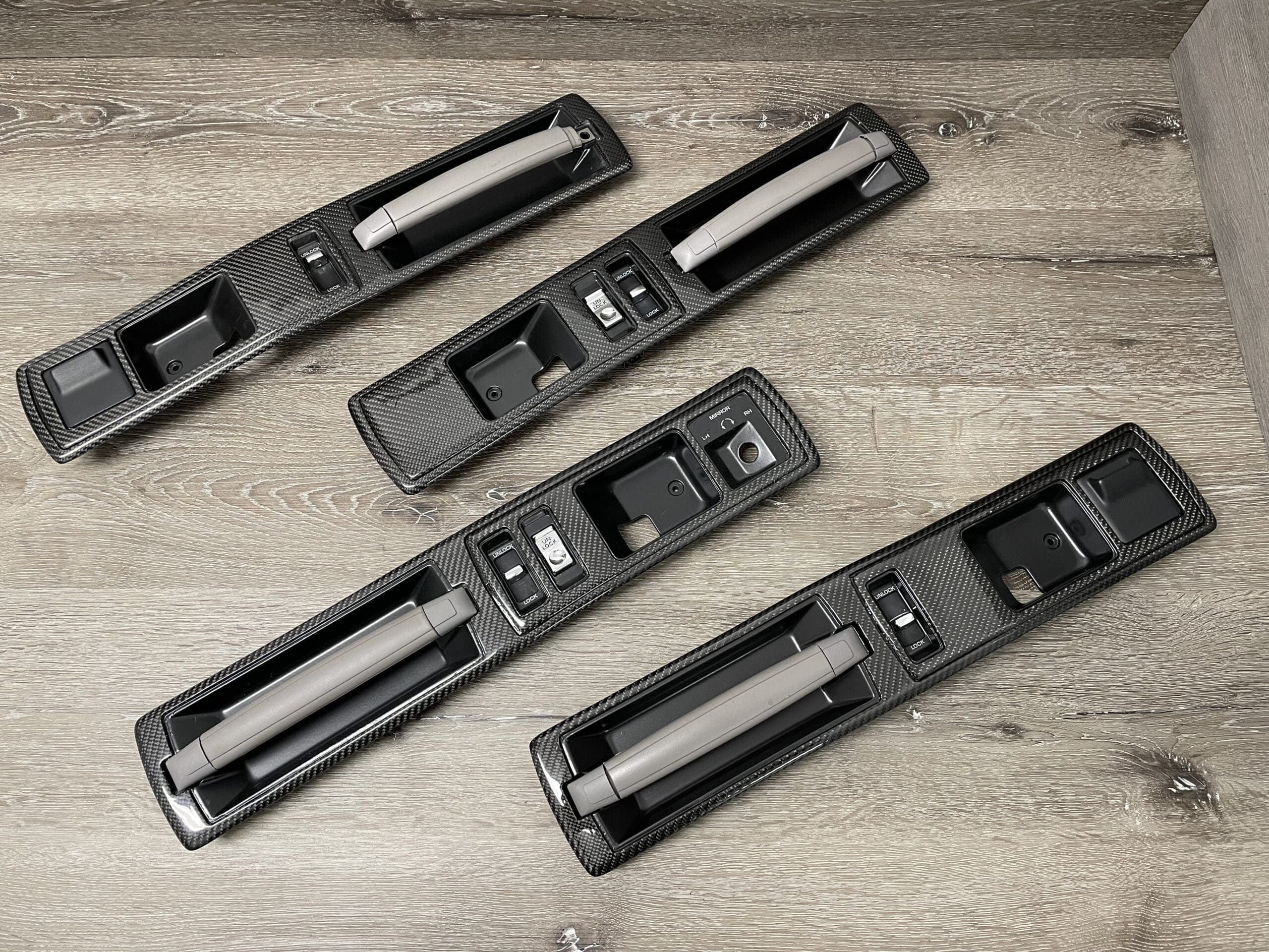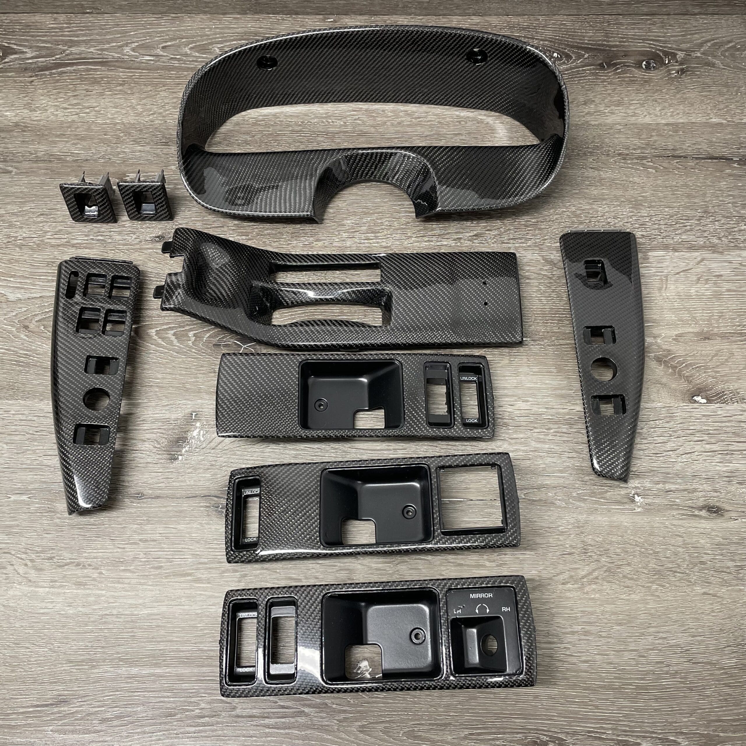 Carbon Fiber Trim Pieces & Accents – Door pulls, air vents, glove box trims, door panels, gear shifters, and other interior elements.