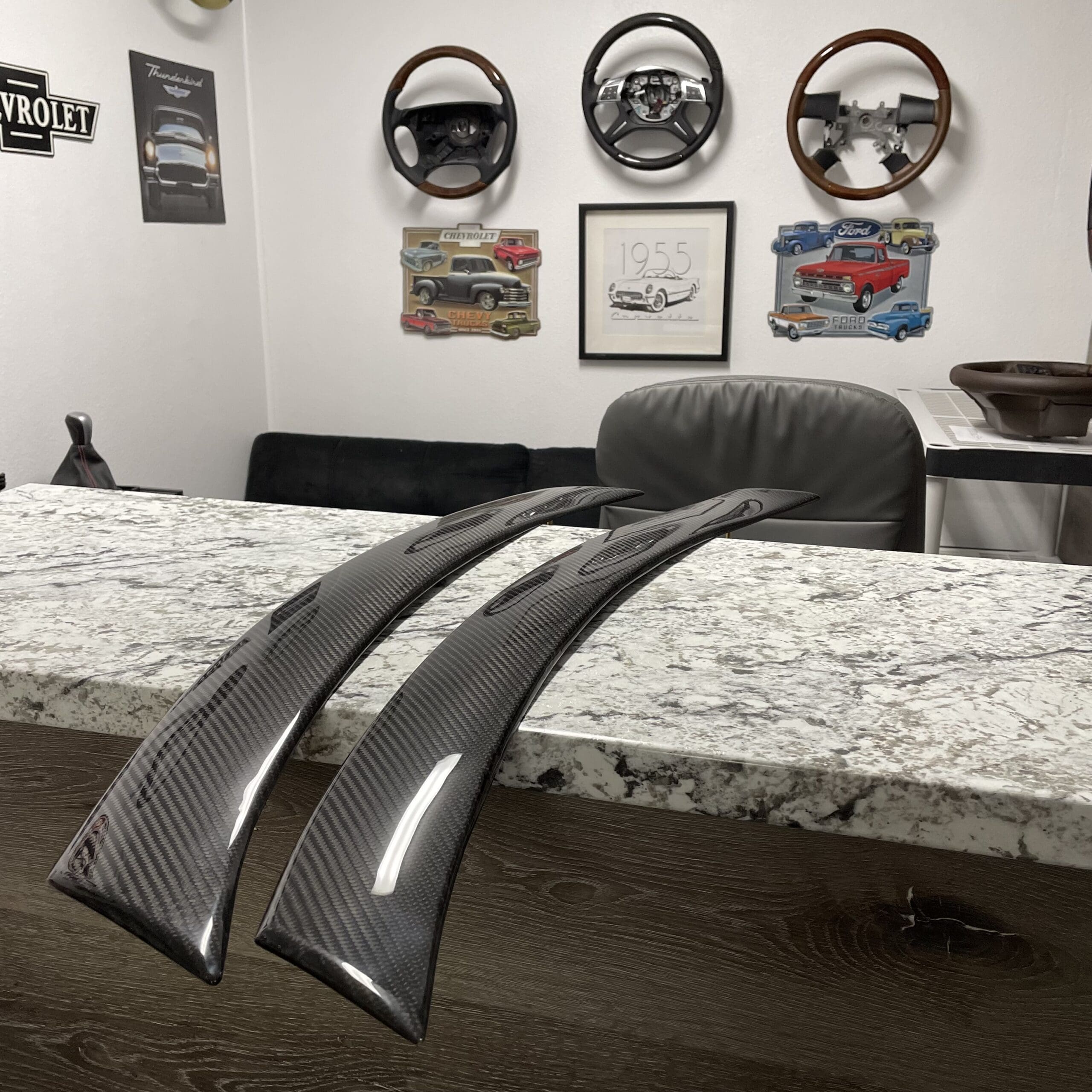 Restoration & Refinishing – We repair and refinish worn or damaged carbon fiber trim: filling cracks, smoothing edges, restoring gloss, or replacing the carbon fiber all together, and applying UV-resistant clear coats.