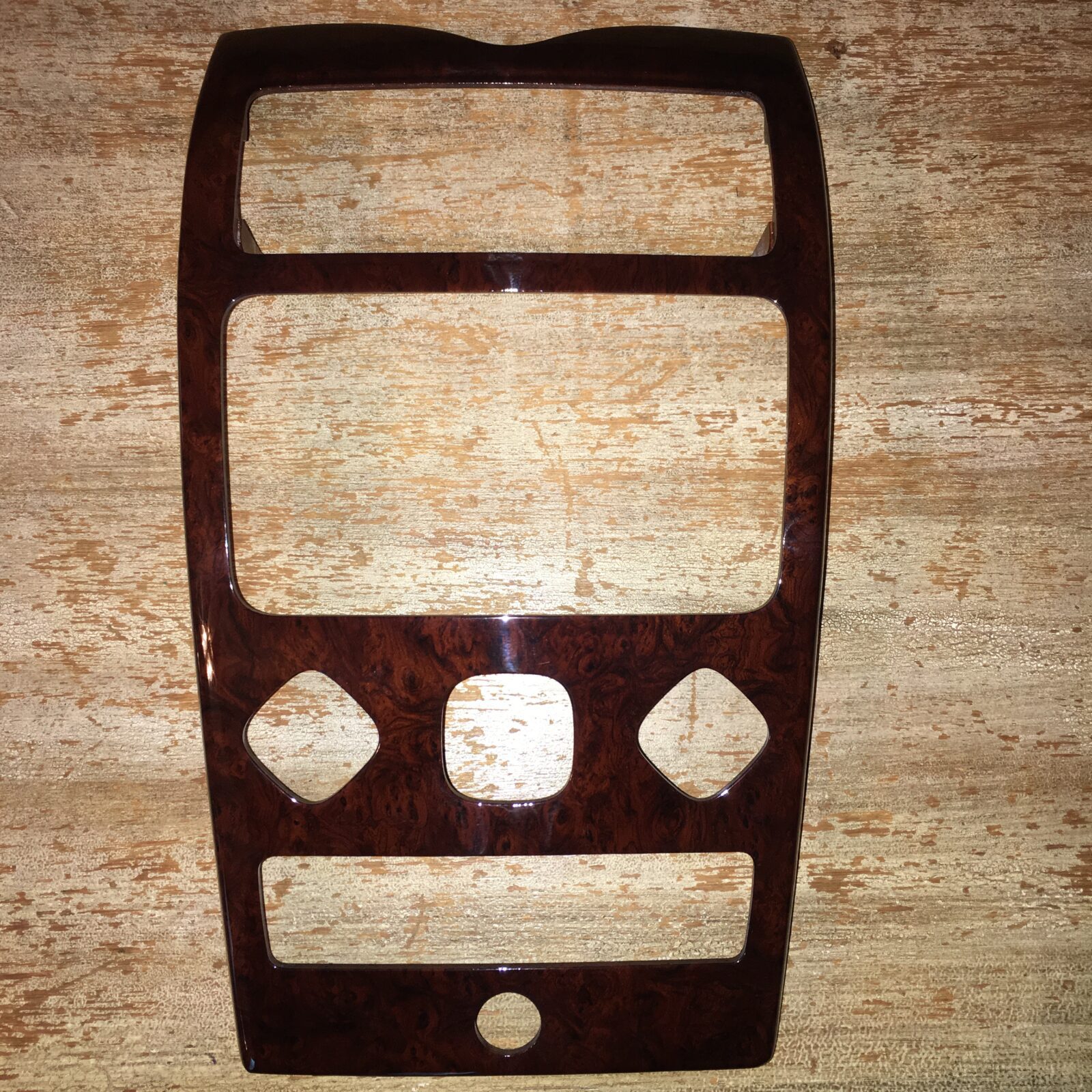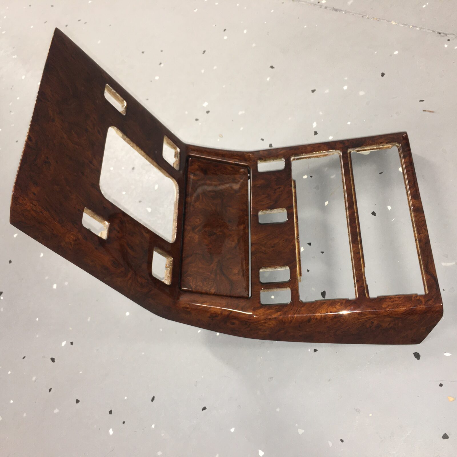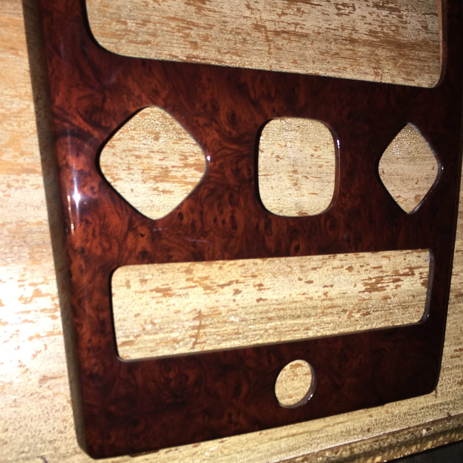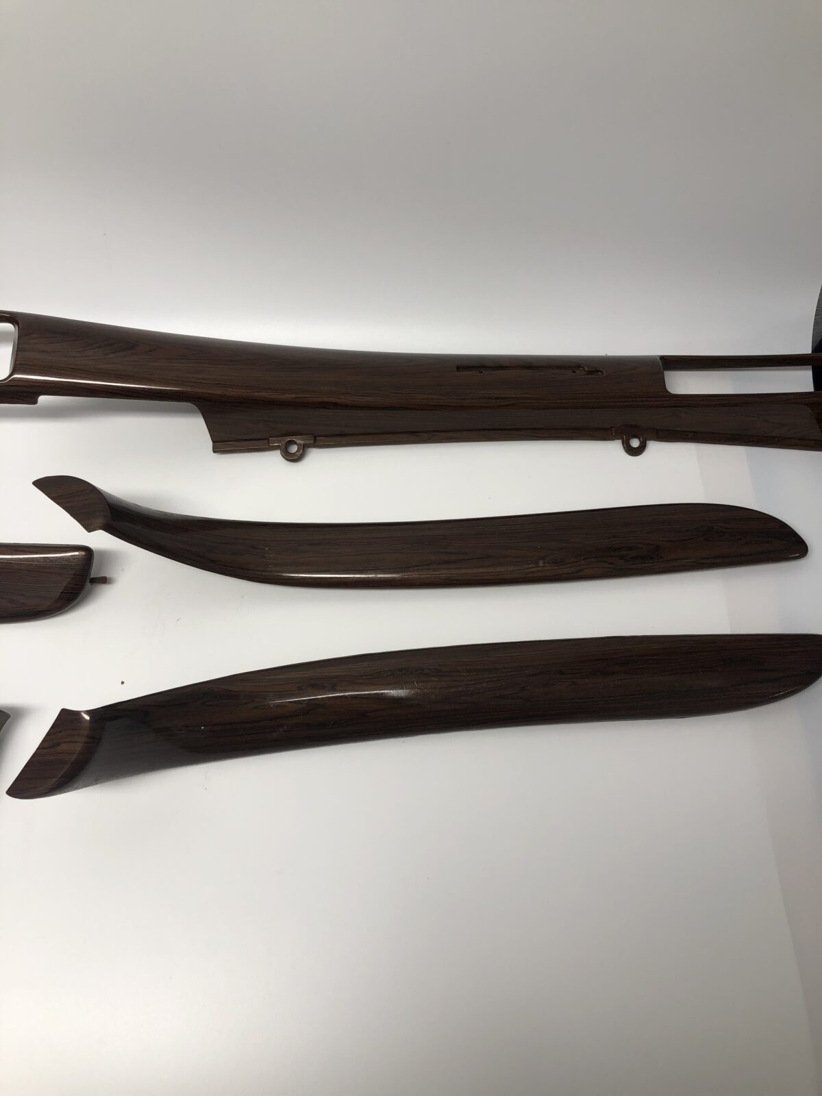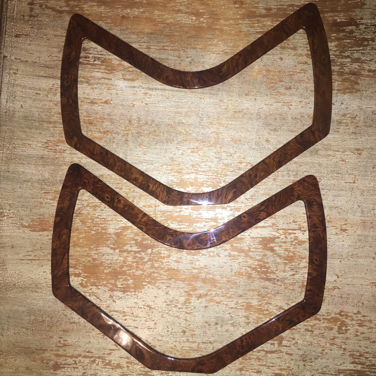 Woodgrain dash elements include all the wooden or faux wood trim pieces on your dashboard and interior trim — from center consoles, door panels, instrument clusters, bezels, and wood inlays to full dash panels. Over time, woodgrain surfaces can suffer damage from sun, heat, or age: cracks, peeling, delamination, color fading, and splintering. Our service handles all of these issues and more.
