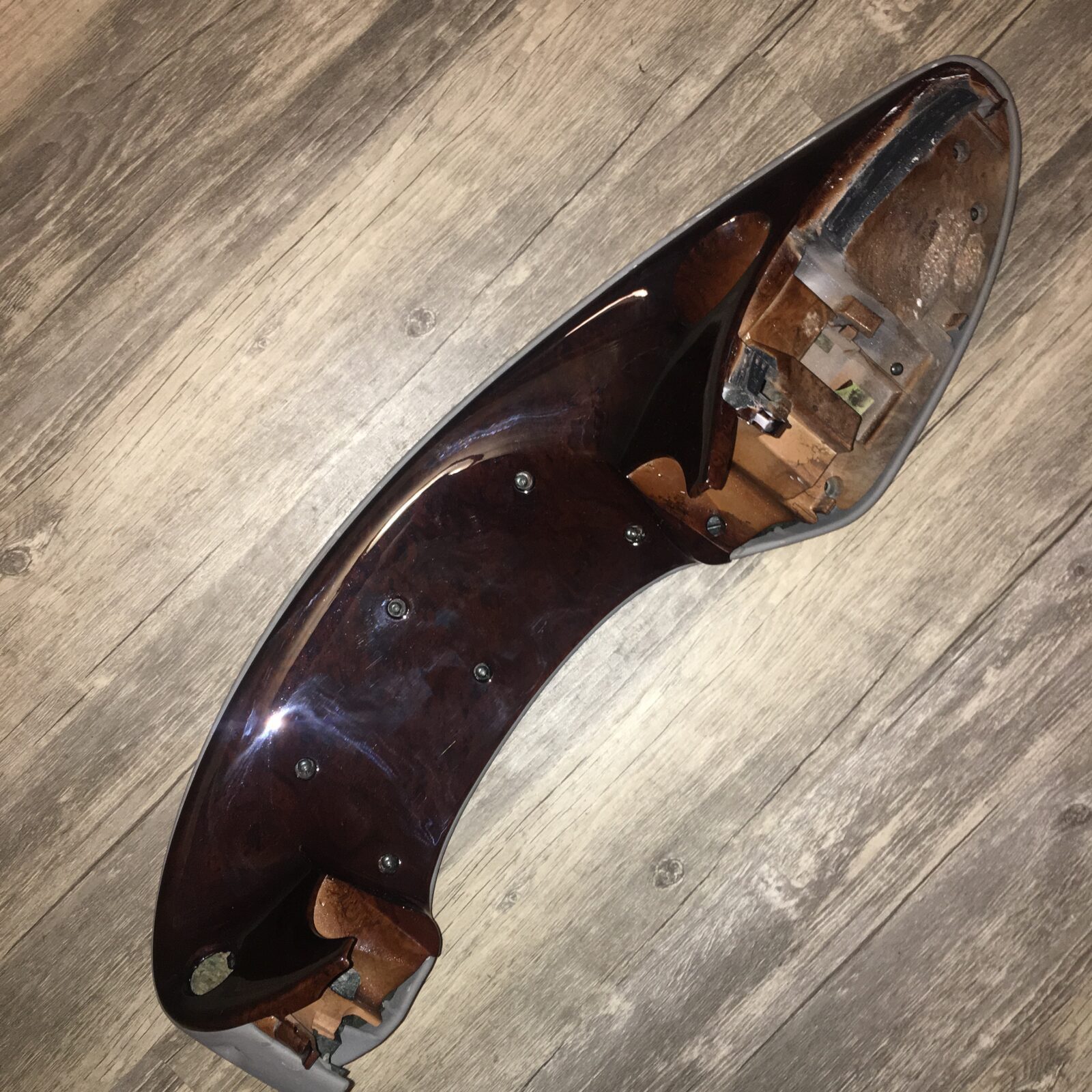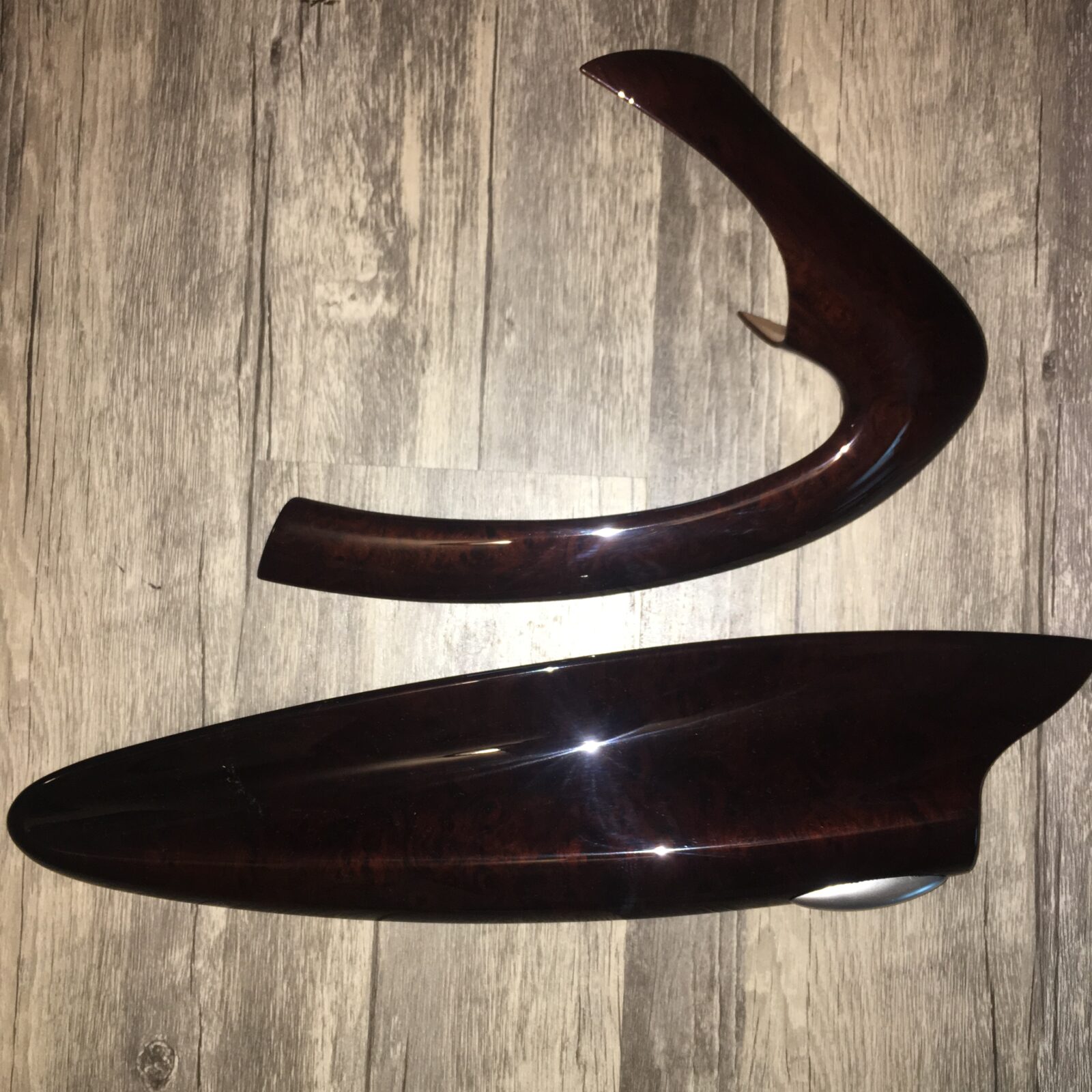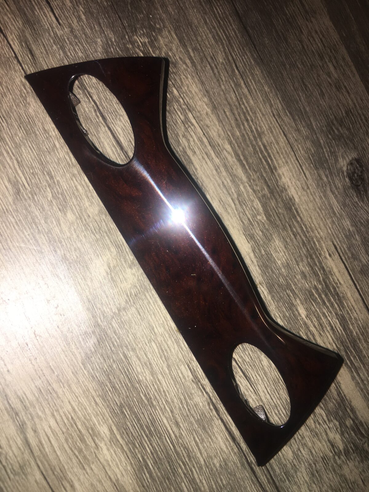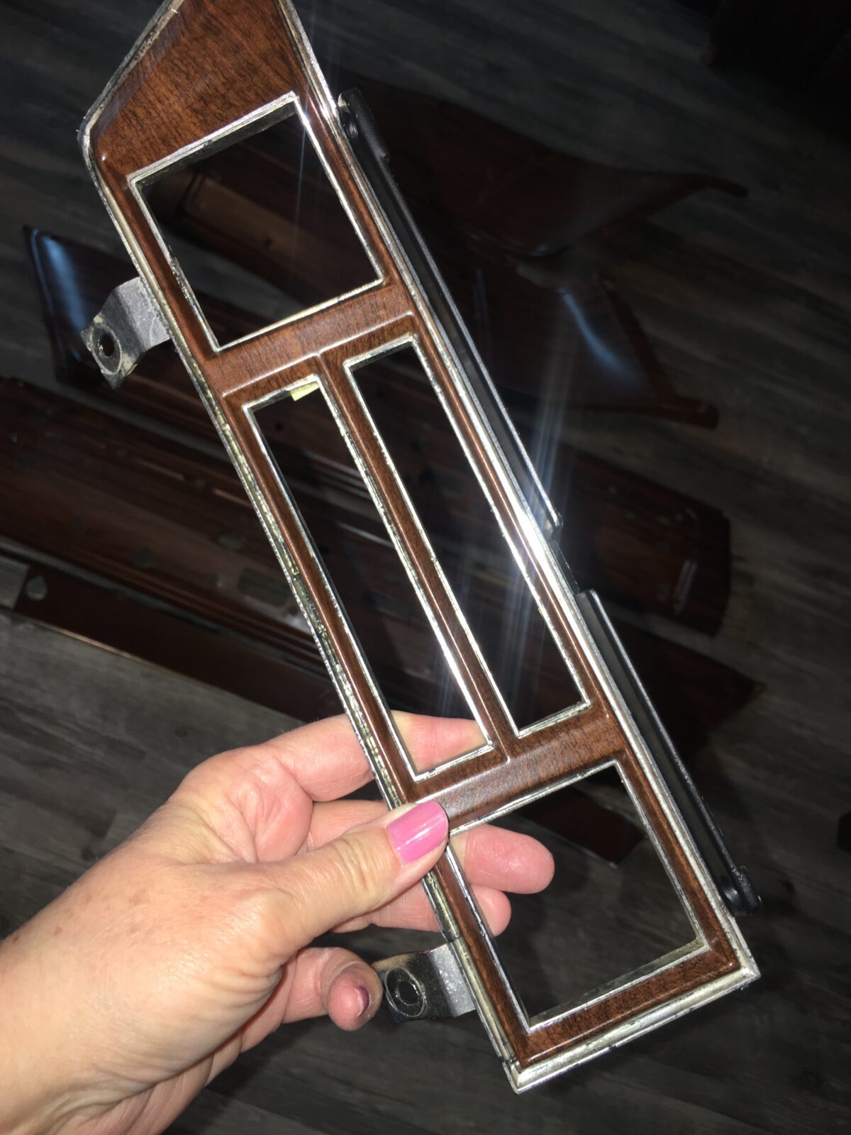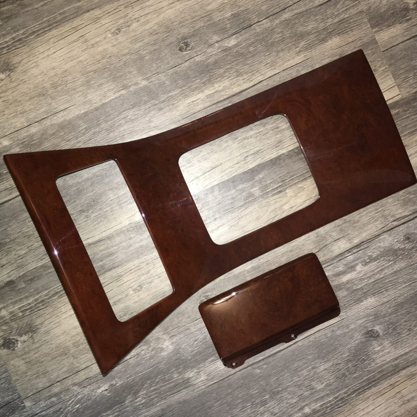 Woodgrain dash elements include all the wooden or faux wood trim pieces on your dashboard and interior trim — from center consoles, door panels, instrument clusters, bezels, and wood inlays to full dash panels. Over time, woodgrain surfaces can suffer damage from sun, heat, or age: cracks, peeling, delamination, color fading, and splintering. Our service handles all of these issues and more.